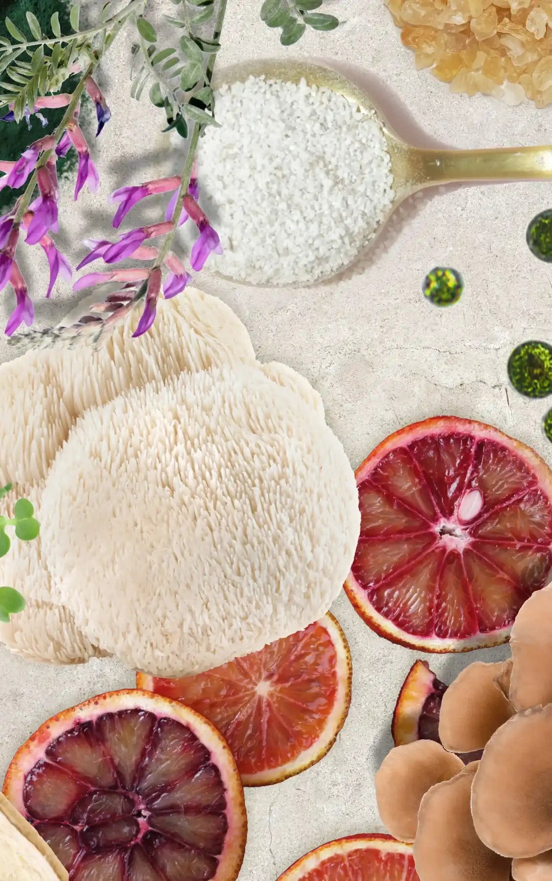 - A comprehensive daily solution combining Organic Superfoods, a Mushroom Longevity Blend, Essential Nutrients, Probiotics + Prebiotics, and Wild-Caught Marine Collagen.